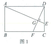 3. (1) 如图 1,在矩形 ABCD 中,点 E,F 分别在边 DC,BC 上,AE⊥DF,垂足为点 G. 求证:△ADE∽△DCF.