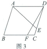 (3) 如图 3,在菱形 ABCD 中,点 E,F 分别在边 DC,BC 上,AE=DF=11,DE=8,∠AED=60°,求 CF 的长.