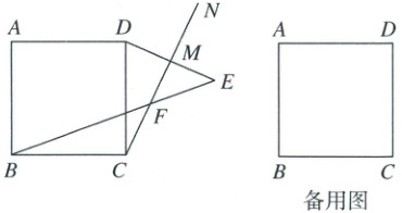 2. 如图,四边形 ABCD 是正方形. 过点 C 在正方形 ABCD 的外侧作射线 CN,∠DCN=α(0°<α<90°). 作点 D 关于射线 CN 的对称点 E,线段 DE 交射线 CN 于点 M,连接 BE 交直线 CN 于点 F.