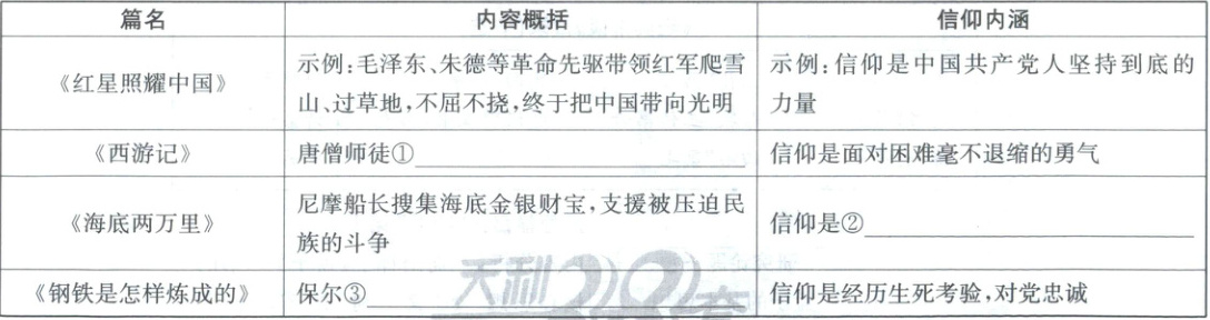 8. 班级开展“名著中的信仰”专题探究活动,请完成以下任务。(6分)
