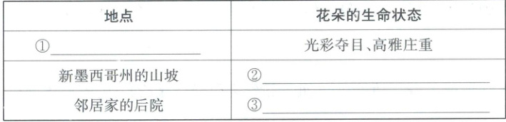 7. 文章重点写了三个地方的“花朵”的生命状态,请阅读文章后,完成下表。(3 分)