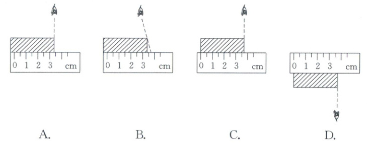 8 C 【解析】测量时要注意被测物体在刻度尺起点的位置;尺子刻线一侧要与被测物体接触;读数时,视线应与尺面垂直。
