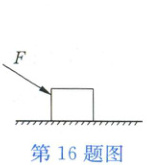 16 *物体在水平桌面上受到一个斜向下的推力 $ F $ 作用,仍保持静止状态,如图所示。以下说法中正确的是(