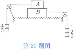 20 *长方体木块 $ A $、$ B $ 叠放在水平实验台上,然后用轻线跨过定滑轮分别与钩码相连接,如图所示。不计轻线的质量以及线和滑轮之间的摩擦,木块 $ A $、$ B $ 在实验台上静止不动。若将图中 $ 5 $ 号钩码取下,并将它放在木块 $ A $ 上,木块 $ A $、$ B $ 仍在实验台上静止不动,则以下说法中正确的是(