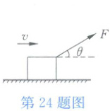 24 质量为 $ m $ 的物体在与水平面成 $ \theta $ 角的斜向上拉力 $ F $ 作用下,沿水平面匀速运动,如图所示。则物体所受拉力 $ F $ 与摩擦力 $ f $ 的合力的方向一定是(