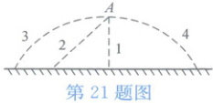 21 B 【解析】本题涉及物体运动的合成(或说“运动的相对性”)。由于物体下落过程中速度变大,而被抛出的物体沿水平方向不受外力做匀速运动,因此不可能出现轨迹2。