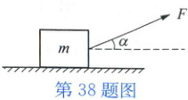 38 如图所示,木块在斜向上方向拉力作用下,沿水平面匀速运动。已知拉力与水平面之间夹角为 $ \alpha $,木块质量为 $ m $,木块与水平面之间动摩擦因数为 $ \mu $。求木块受到的拉力大小。