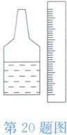20 如图所示,用刻度尺测出瓶底直径为 $ D $,瓶口朝上倒入一部分水,测出水面高度为 $ L _ { 1 } $,然后再堵住瓶口,将瓶倒置测出水面离瓶底高度为 $ L _ { 2 } $,则可得出瓶的容积 $ V $ 约为