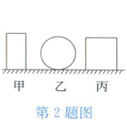 2 如图所示,三个质量完全相同的物体,甲为圆柱体、乙为球体、丙为正方体,在水平桌面上静止时,它们对桌面压强最大的是(