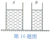 16 设放球前容器内液体深度为$h$,由题设条件有$\rho_1 : \rho_2 = \rho_1 g h : \rho_2 g h = 1 : 2$,可知$\rho_1 : \rho_2 = 1 : 2$。放球后,容器