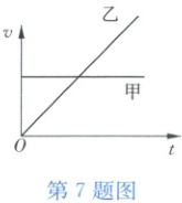 7 AD 【解析】甲图线表示的速度v是常量(物体做匀速运动),而乙图线表示的速度v与时间t成正比(物体做匀加速运动)。