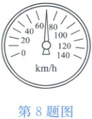 8 成渝高速公路全长约 330 km,由重庆开往成都的汽车运行 2 h 刚好驶过全程的中点,此时司机观察座位前的速度计,如图所示。由此可知,此时车行驶速度为