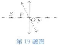 19 物距在一、二倍焦距之间,成放大实像,像在二倍焦距之外。光路图见答图。