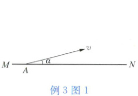 如图 1 所示,湖岸 $ MN $ 为一直线,有一小船自岸边的 $ A $ 点沿与湖岸成 $ \alpha = 15° $ 角方向匀速向湖中驶去。有一人自 $ A $ 点同时出发,他先沿岸走一段再入水中游泳去追船。已知人在岸上走的速度 $ v_1 = 4 m/s $,在水中游泳的速度 $ v_2 = 2 m/s $。若人能追上船,船速至多为多少?
