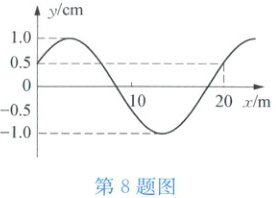 所以波动方程为$y = 1.0\sin(5\pi t+\frac{\pi}{10}x)\mathrm{cm}$。