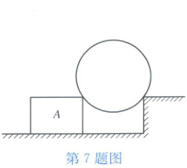 7 一个密度均匀的圆柱体,质量为 $ m $,半径为 $ R $,放在两个等高的台阶上,一个台阶固定不动,一个台阶可无摩擦地滑动(如图)。现使可动台阶 $ A $ 远离固定台阶向左运动,当两支点间的距离为 $ \sqrt{2}R $ 时,固定台阶对圆柱的支持力为 $ N $,求此时可动台阶 $ A $ 的滑动速度大小。设圆柱与固定台阶间不相对滑动。