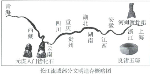 (1)长江滋养了源远流长的中华文明。图中呈现的文物有何研究价值?任选其一,概括提取历史信息。(2 分)