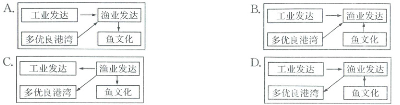 聚焦区域特征,探寻要素联系,是认识区域的重要方式。在某区域的介绍词中多次出现“鱼文化”“多优良港湾”“渔业发达”“工业发达”等描述。据此,回答 11—12 题。