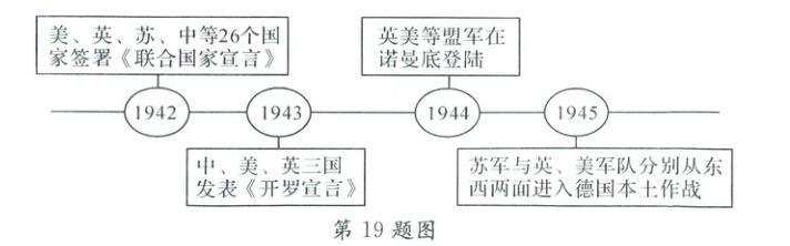 19. 下图列举了第二次世界大战中的四个重大事件。这些事件共同反映的是(