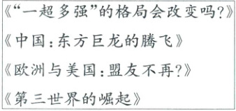 20. 冷战结束后,世界格局发生了新的变化。下面内容展示的是某校九年级学生围绕该变化进行演讲比赛的部分题目。据此可知,这次演讲比赛的主题是(