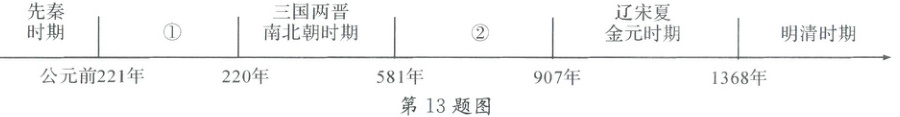 13. 归纳历史发展的阶段特征是学习历史的重要方法之一,下图中①时期的阶段特征是(