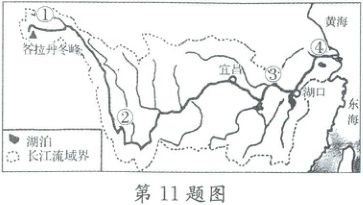 11. 下列措施与右图中长江各河段的水文特征相适应的是(