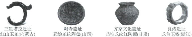 13. 龙是中华民族最主要的图腾之一。下图为我国不同地区出土的新石器时代器物,这些器物均有“龙”的元素。这说明(