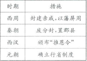 14. 右表列举了我国古代不同时期部分治国理政的措施。这些措施的共同目的是(