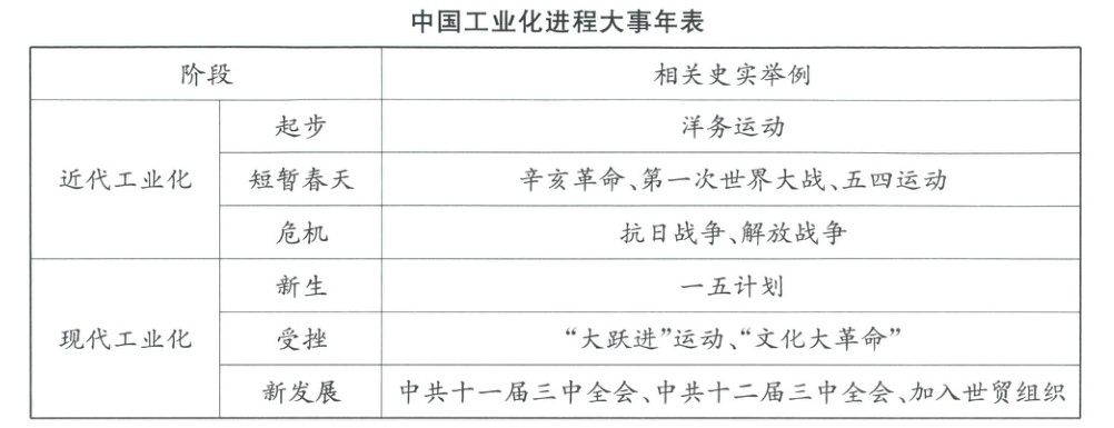 材料二:中国工业化进程见证了中国历史的发展变迁,相关历程见下表。