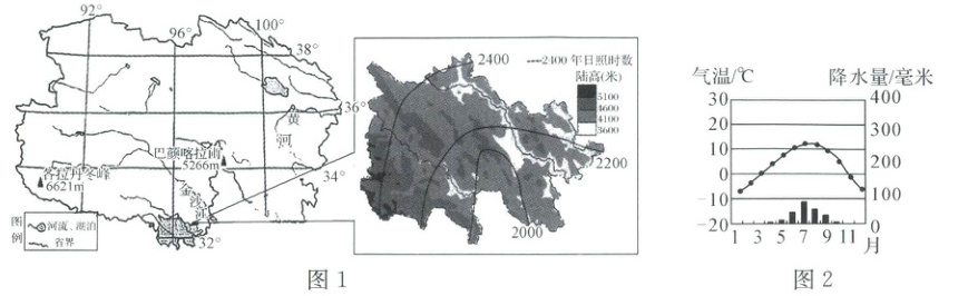 材料一:图 1 为囊谦县位置及地形示意图,图 2 为囊谦县气候资料图。