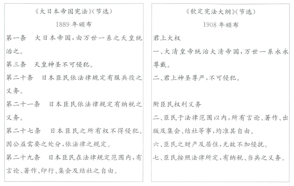 (2)结合 19 世纪后期中日两国的不同命运,简析清政府在《钦定宪法大纲》中参照《大日本帝国宪法》的原因。(4 分)