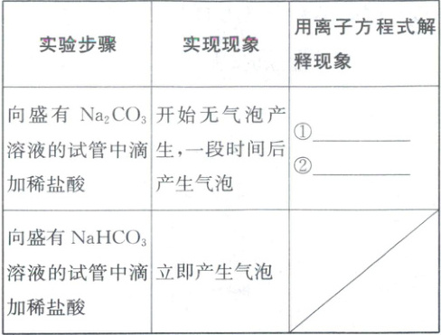 (1)探究溶解性。在两支试管中,分别加入约 1 g Na₂CO₃和 NaHCO₃固体,分别加入 5 mL 水,充分振荡后,一支试管中固体有剩余,剩余的固体是______。