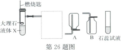 (填“A”或“B”)收集装置。(3) 图中铜制燃烧匙可在试管内上下移动,此装置与将大理石直接放入液体X中相比,其主要优点是
