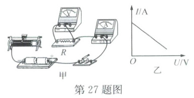 27. 为了测量未知电阻R的电阻值,小科设计了如图甲所示的实验电路。