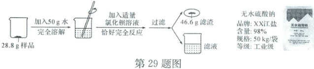 29. 无水硫酸钠又称元明粉,暴露于空气中易吸湿成为含水硫酸钠,常用于造纸和玻璃、印染和医药工业等。某兴趣小组为测定某元明粉样品是否为合格品进行了以下实验(杂质不参与反应,过滤后滤渣损失忽略不计)。