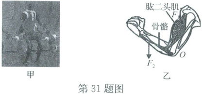 (2) 机器人能模仿人类进行抬手动作,但是两者动力不同。人利用肱二头肌收缩将前臂抬起(如图乙),此时前臂相当于______杠杆(填“省力”“费力”或“等臂”);机器人依靠电动机驱动关节转动,电动机的工作原理是______。