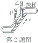 2. 如图,甲、乙两人站在上行的自动扶梯上,以扶梯为参照物,下列分析正确的是(