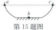 15. 如图为两个光滑的弧面和一段粗糙的水平面相连接的装置。将质量为$m$的物体从左侧弧面的$a$点静止释放。忽略空气阻力,下列有关说法正确的是(