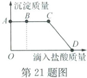 21. 向盛有硫酸铜溶液的试管中滴入一定量的氢氧化钠溶液后,再逐滴加入一定量的盐酸溶液,试管中沉淀质量与滴入盐酸质量的关系如图。