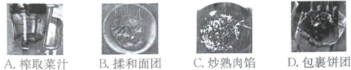 1. 下图是清明饼制作的几个环节,其中涉及化学变化的是(