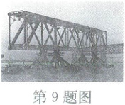 9. 钱塘江大桥的桥梁运输采用“浮运法”,如图所示,利用潮汐的涨落用浮船将桥梁运至桥墩上方,浮船运送桥梁时受到的浮力为F₁,浮船将桥梁架设到桥墩上之后受到的浮力为F₂,则(