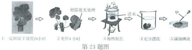 23. 某科学兴趣小组进行了“绿叶在阳光下制造淀粉”的实验,实验过程如图所示: