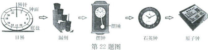 22. 计时工具随着时代发展在不断迭代,下图是不同年代部分计时工具的演变历程。