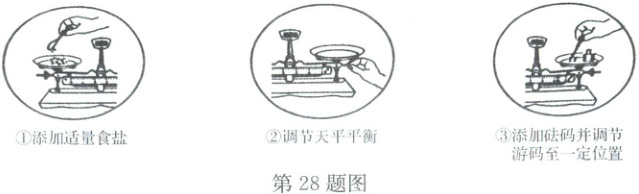 (3)下图是称取一定质量食盐的3个操作步骤,其正确的排序是