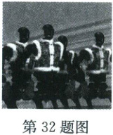 32. 今年央视春晚舞台上,宇树科技的人形机器人 H1 进行了精彩的表演。已知每个 H1 机器人质量约为 47 千克,在表演过程中,机器人双脚站立在水平舞台上,与地面的接触面积为 200 厘米²。请回答下列问题: