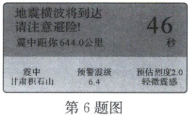 6. 右图为我国某次地震时,居民通过手机收到的预警信息。下列关于此次地震说法错误的是(