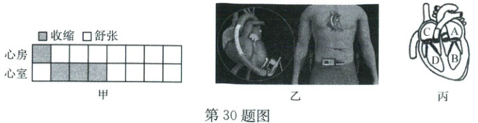 30. 心脏是人体的重要器官,心脏中左右两个“泵”协同工作为血液循环提供动力。