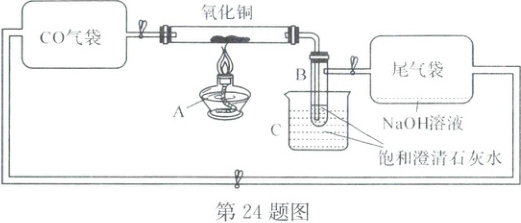 24. 如图是进行一氧化碳与氧化铜反应的改进装置。请回答下列问题: