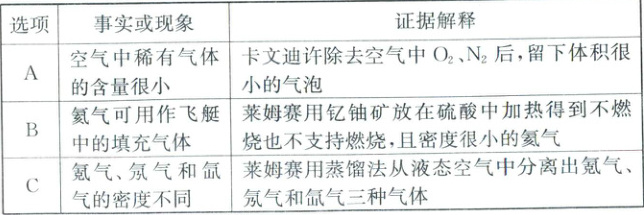 。(3) 稀有气体的发现是一个艰难的过程,下列是当代科学家分析的事实或现象,其中发现史中相关证据解释合理的有