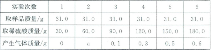 31. 食品包装袋内常放入铁粉作“双吸剂”,有防止食品变潮等多种功能。小科同学对此产生了兴趣。他拆开一包已经使用过的“双吸剂”(其中铁粉表面已生锈),分成等质量的六份,分别加入稀硫酸。反应后测得部分数据如下,请根据有关信息回答问题。